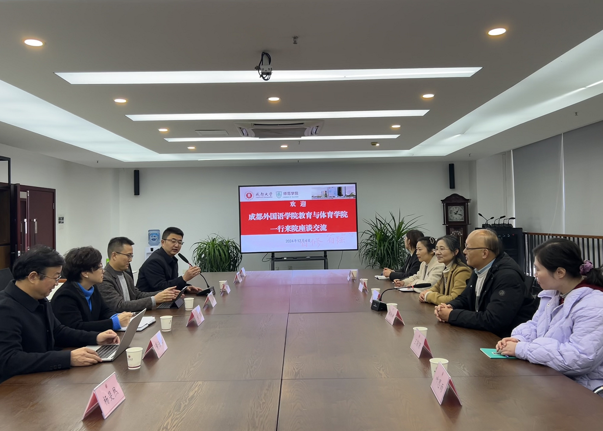 12月4日下午,我院一行到成都大学师范学院就学前教育专业办学情况进行交流。成都大学师范学院党委书记蒲永明教授、院长李敏教授、副院长黄云峰教授、实验实训中心主任程维薇副教授、学前教育系王德林教授等参与了交流。
