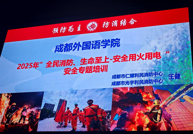 活动首站设在博学广场的消防逃生舱体验区。密闭舱体内模拟了真实火灾场景。随后,观澜堂内的消防安全讲座同步开讲。主讲教官王健结合近期校园及居民区火灾案例,用“案例+演示”的方式拆解火灾处置流程:从“初期火情如何判断”到“灭火器‘提拔瞄压’四字口诀实操”,再到“不同场景下的疏散‘就近原则’”,现场还设置“互动问答”环节,同学们回应。最后在口语角的灭火器实训区,工作人员准备了干粉灭火器与模拟火盆。学生们分组上前,按照“提瓶身、拔保险、瞄火源、压把手”的步骤实操灭火,原本略显生疏的动作,在反复练习后逐渐熟练。通过理论与实践的紧密结合,学生们不仅加深了对消防安全知识的理解,更在实际操作中提升了应急处置能力,真正实现了从“知”到“行”的转化。